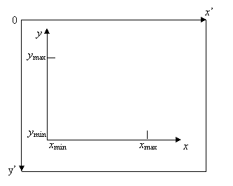 (отступ на 10 позиций от краев экрана позволит создавать подписи, разметку осей и др.). Имеем