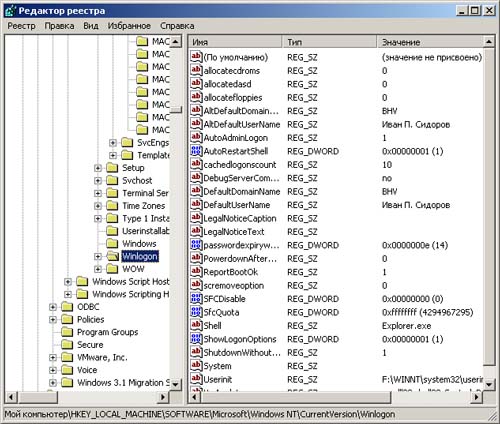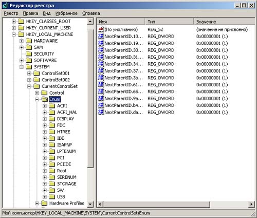 Данные реестра хранятся в виде параметров, расположенных в разделах реестра. Каждый параметр характеризуется именем, типом данных и собственно значением. Три части параметра реестра всегда располагаются в следующем порядке: