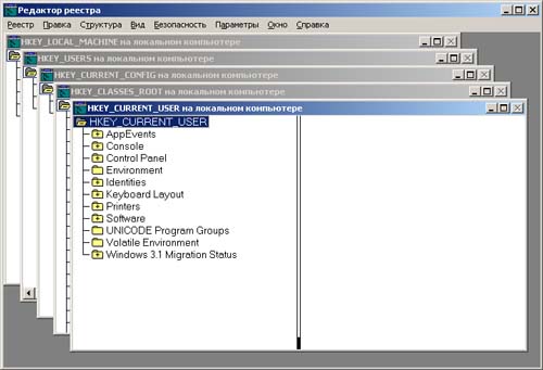 Реестр Windows 2000 состоит из пяти так называемых корневых разделов (root keys): HKEY_CLASSES_ROOT, HKEY_CURRENT_USER, HKEY_LOCAL_ MACHINE, HKEY_USERS и HKEY_CURRENT_CONFIG.