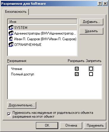 Дает право получать доступ к разделу и создавать/модифицировать для него Список управления доступом (Access Control List, ACL) |