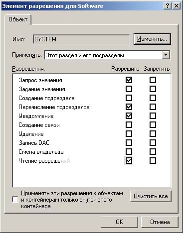 Пользователь, зарегистрировавшийся на компьютере с правами администратора, может присвоить себе права владельца на любой раздел реестра. Однако если администратор будет иметь права владельца на раздел без прав полного доступа, то раздел не может быть возвращен первоначальному владельцу, а в журнале аудита появится соответствующее сообщение.