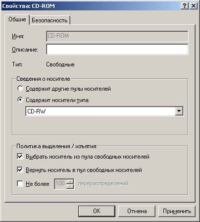 | Системные пулы носителей (system media pools). Система съемных ЗУ создает по одному пулу свободных носителей, нераспознанных носителей и импортному пулу для каждого типа носителей. | |